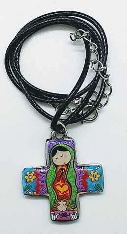 Collar Cruz Virgen de Guadalupe infantil – lila Reverso:
