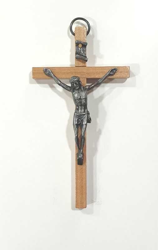 Crucifijo de madera con cristo chico en metal
