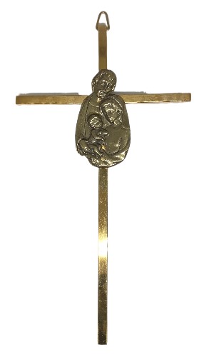 Cruz de bronce para colgar – dimensiones: 15 x 9 x 0,5 cms. / Imagen sagrada familia metálica – color bronce – dimensiones 5 x 3 cms.