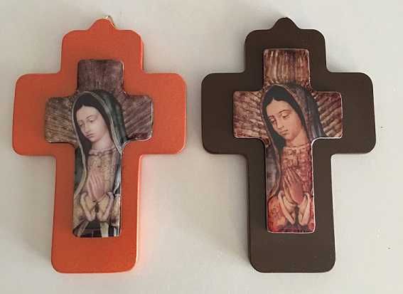 Cruz – Virgen de Guadalupe, con imágen resinada, 10 x 15 cm. opción: en naranja o cafe