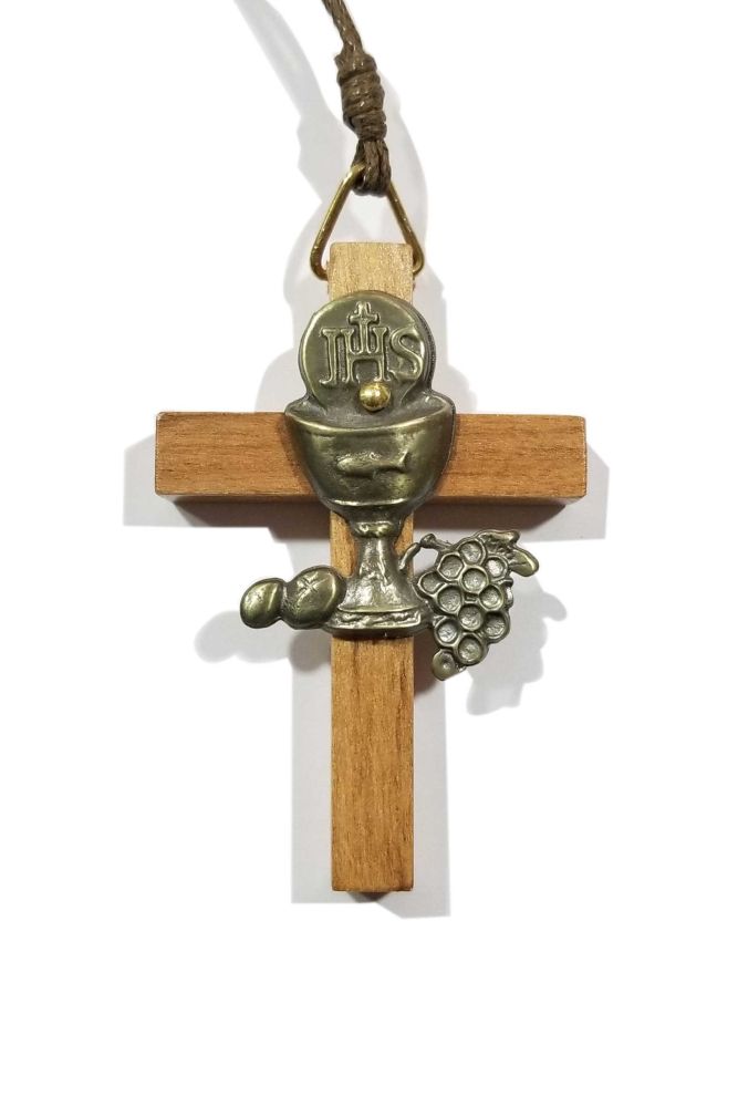Cruz de madera 6×4 cms, con copon metalico, incluye cordon blanco o café