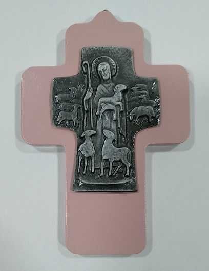 Cruz rosada con cordero – Primera Comunion – Tamano 14 cm. x 9.5 cm.