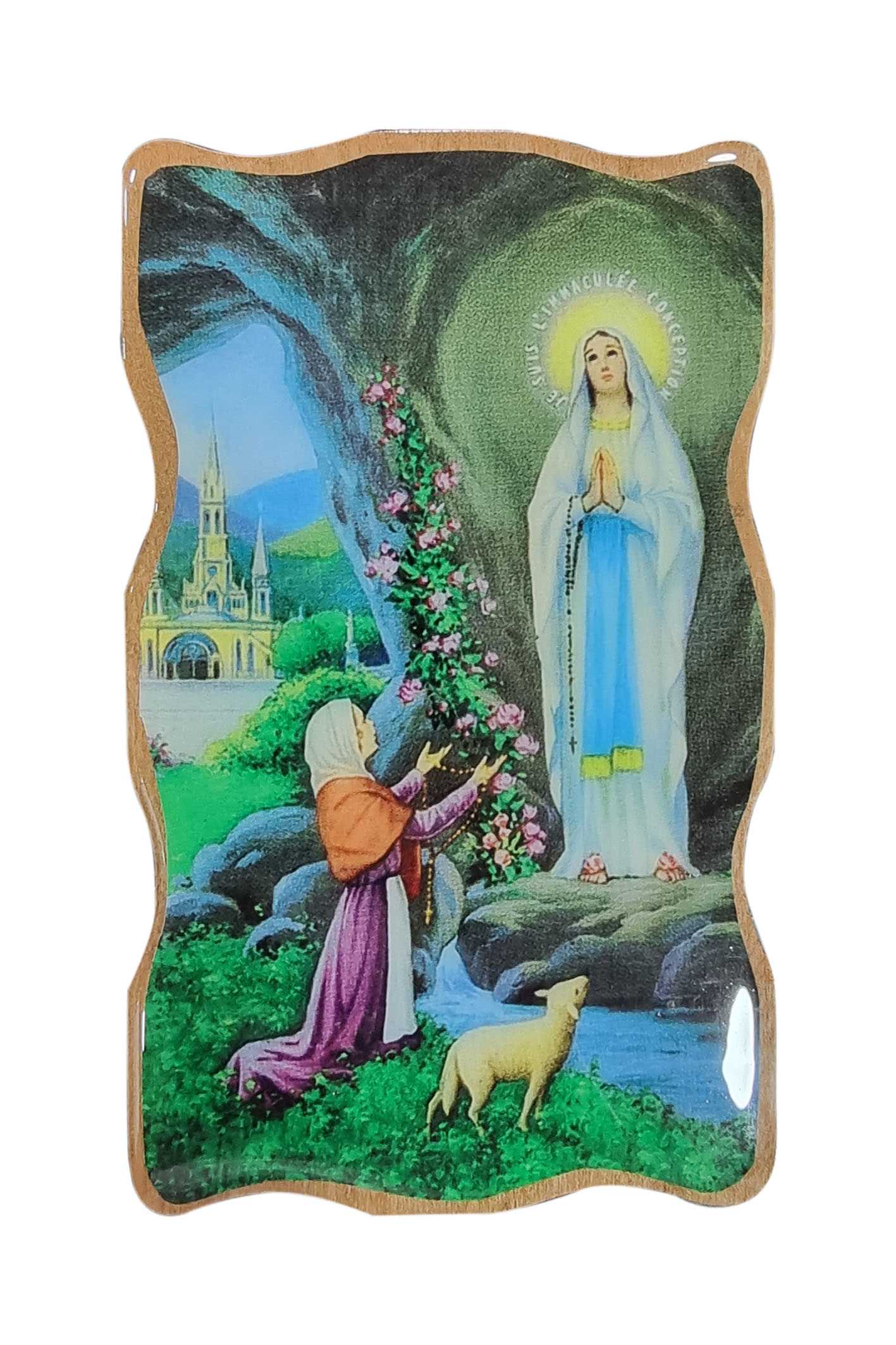 Cuadrito Virgen de Lourdes verde – Medidas: 15 x 8,5 cm.