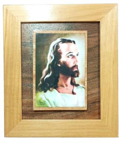 Cuadro con imagen de Jesús, para colgar – con doble fondo al centro para resaltar imagen / marco en madera natural barnizada a mano con imagen resinada, efecto cristal / dimensiones 33 x 28 cms. (aprox.)