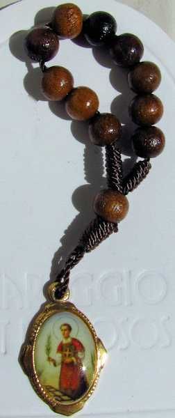 bolitas de madera (4mm) y medallita metalica con imagen del santo.