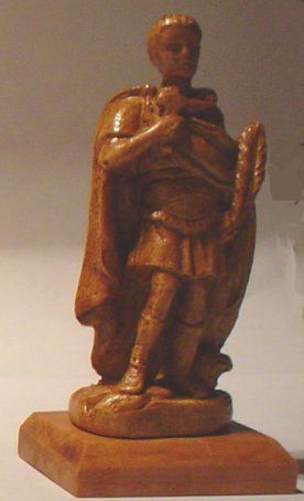 Tamaño: 8cms.. Yeso coloreado madera, sobre base madera
