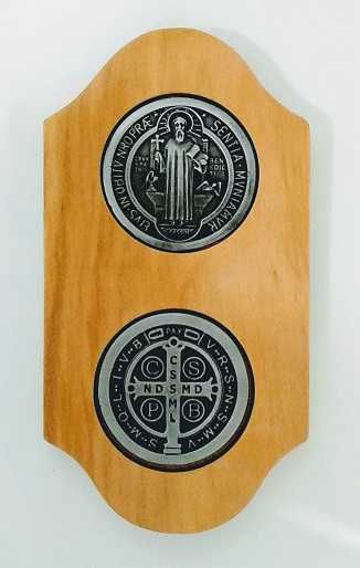Icono colgante San Benito con forma. – Medidas: 16 cm. x 8,5 cm.