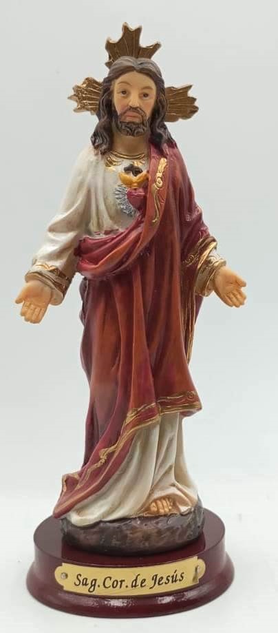 Imagen sagrado corazón de Jesús / elaborada en poliresina, importada / base de madera / Altura total 14 cms.