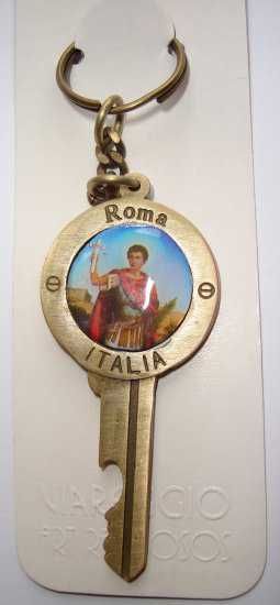 LLavero con forma de llave con imagen de San Expedito