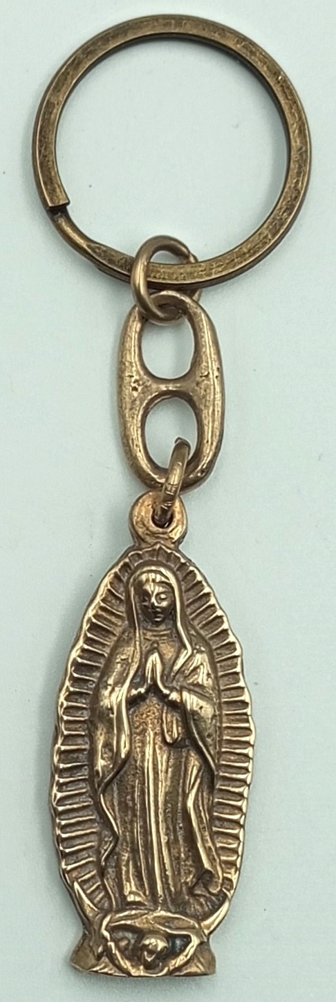 Llavero metálico con figura virgen de Guadalupe / Color bronce / Dimensiones: largo total 10 cms – largo imagen 5 cms.