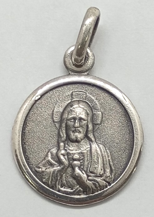 Medalla de plata Sagrado Corazón de Jesús con borde (filete) / Diámetro 18 mms.