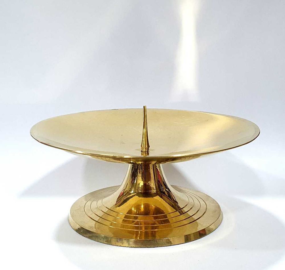 Porta vela para velas, velones o cirios grandes y/o pesados / medidas: 4cm alto y 12 cm de diámetro / con baño de bronce / hecho a mano.