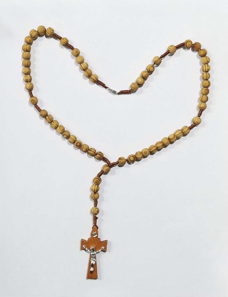 Rosario de cuentas de madera natural, sin eslmalte ni pintura