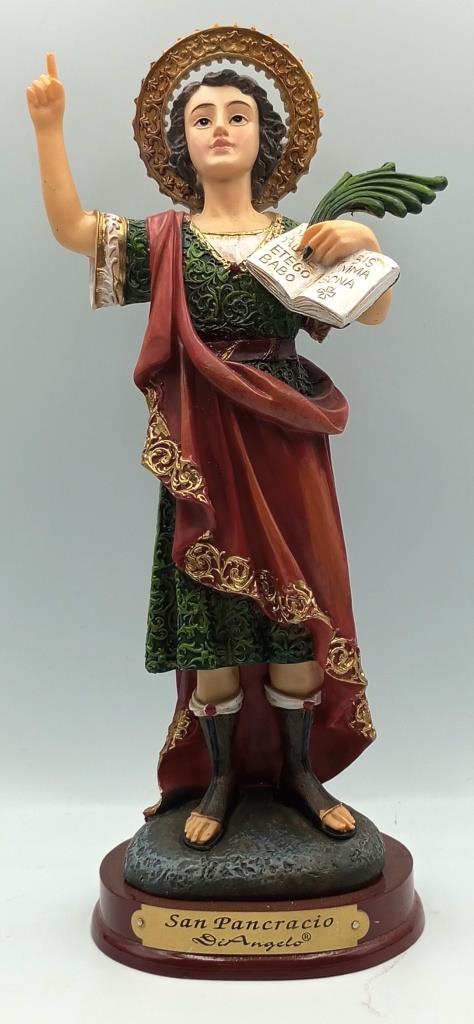 Imagen San Pancracio / Material: poliresina / Altura total 21,5 cms. – Base 8,5 x 7,5 x 1,5 cms.