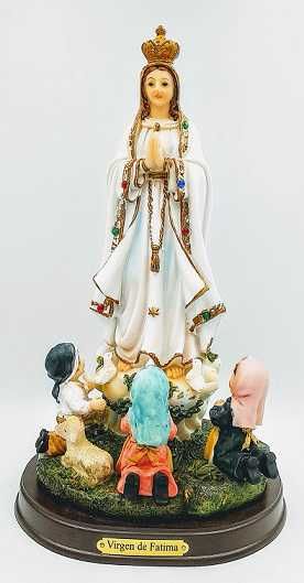 Imagen virgen de Fátima con pastores (3) / Materialidad: poliresina / Altura 19 cms.