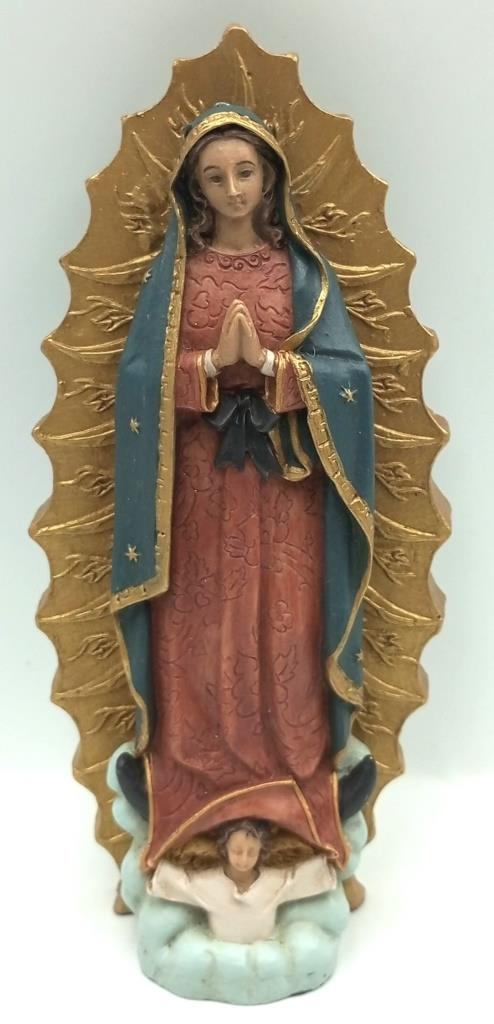 Imagen Virgen de Guadalupe / Elaborada en piedra reconstituida / pintada a mano / Dimensiones: altura 13,5 cms. – ancho: 6 cms.
